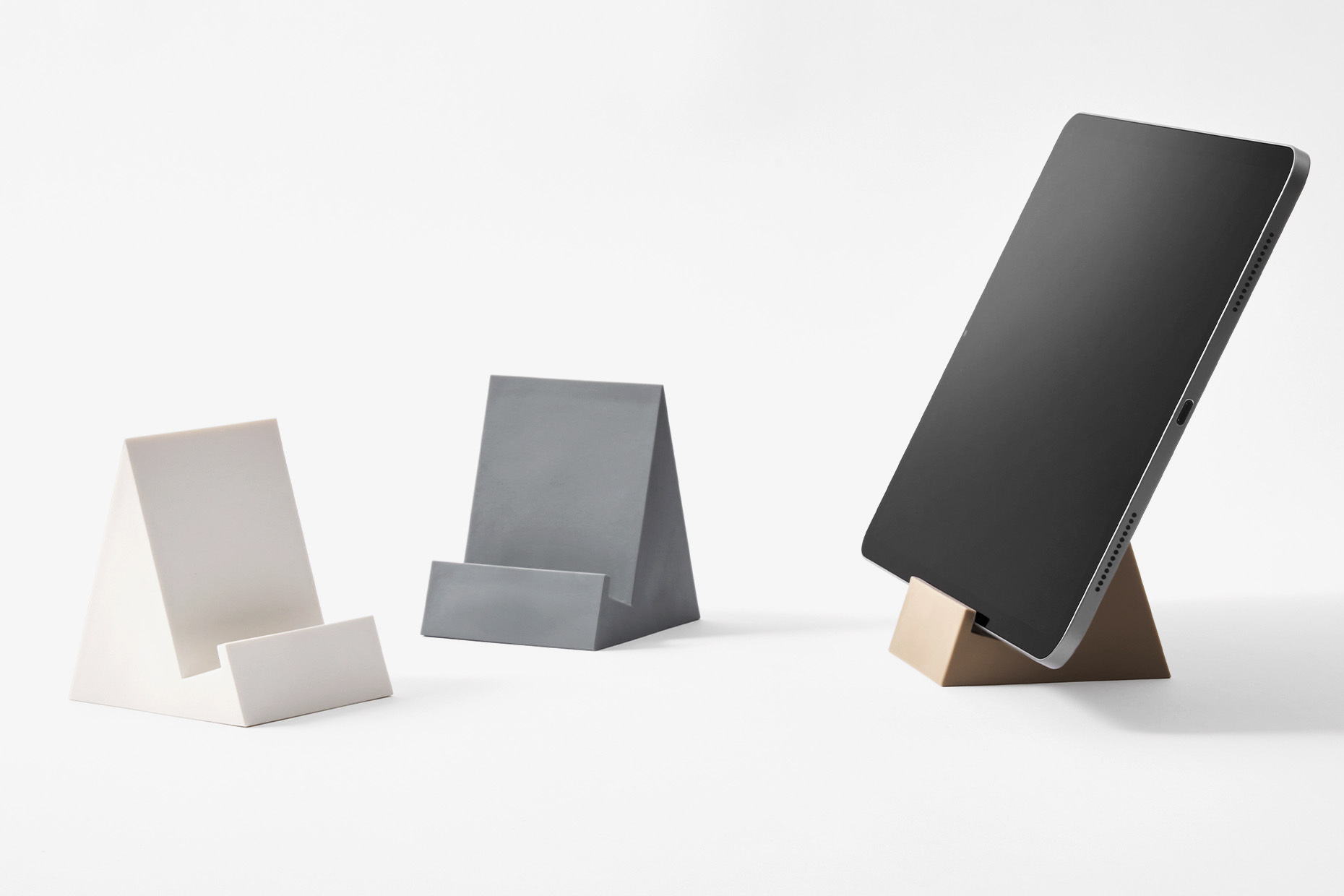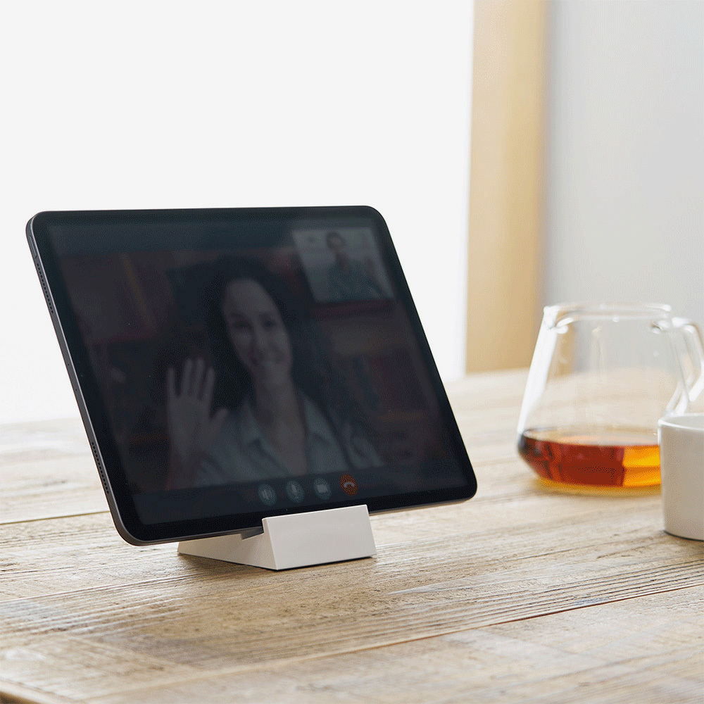 場所をとりがちなタブレットを立ててスッキリ収納。限られたスペースを有効活用できます。タブレットを置いたまま画面の操作や動画などを見ることもできて、柔らかい素材でタブレットもテーブルも傷つけません。スマートフォンやノートPCにも。