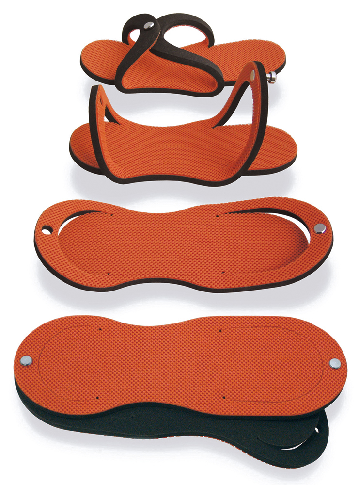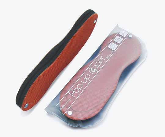 Resembling a slab, these indoor slippers have a changeable form. The compact design makes them easy to carry when traveling. Weighing 90 g a pair, the slippers are lighter than a pair of thick socks. We have used mesh on the outer surface for a comfortable and airy feel when worn.